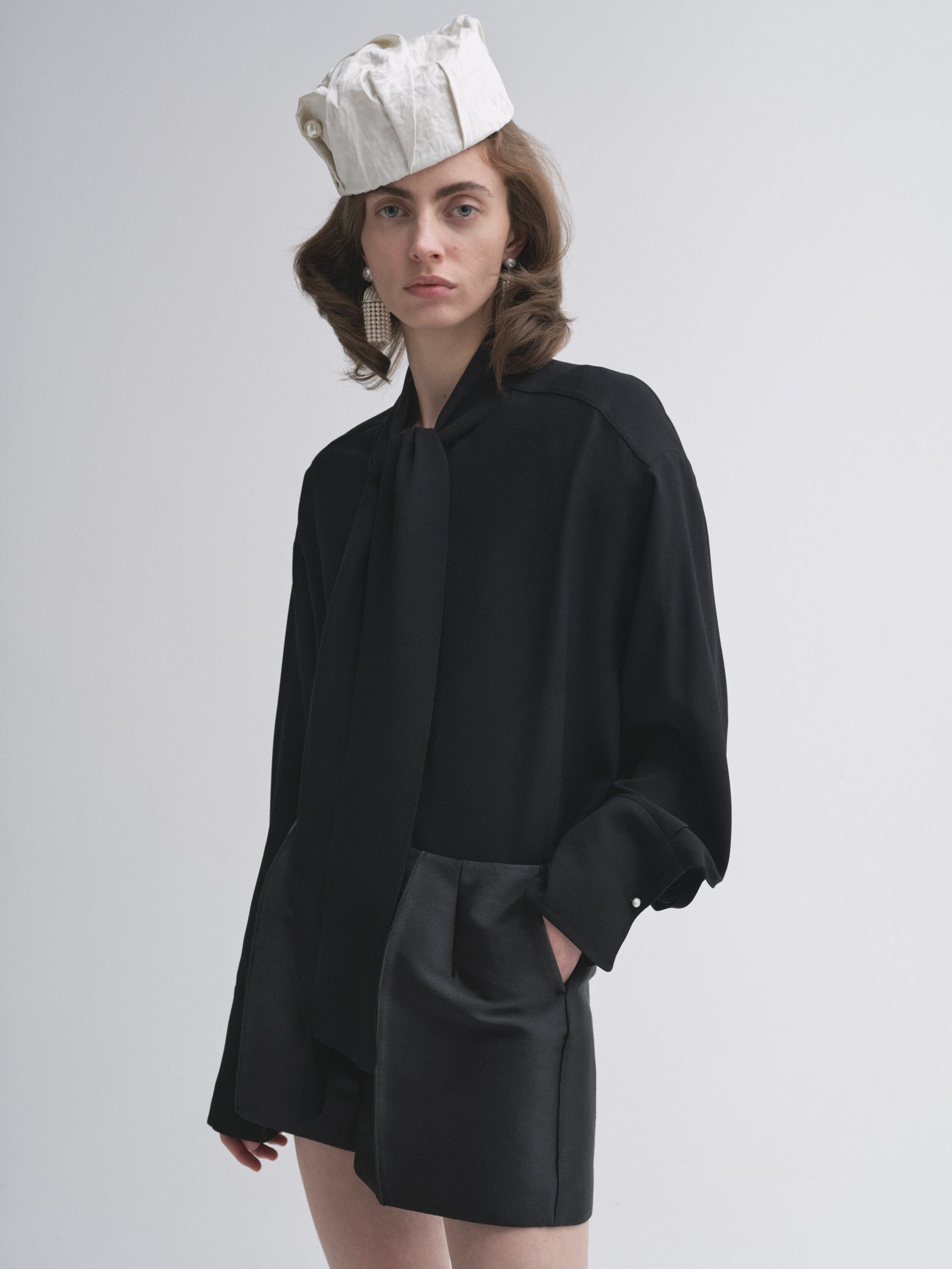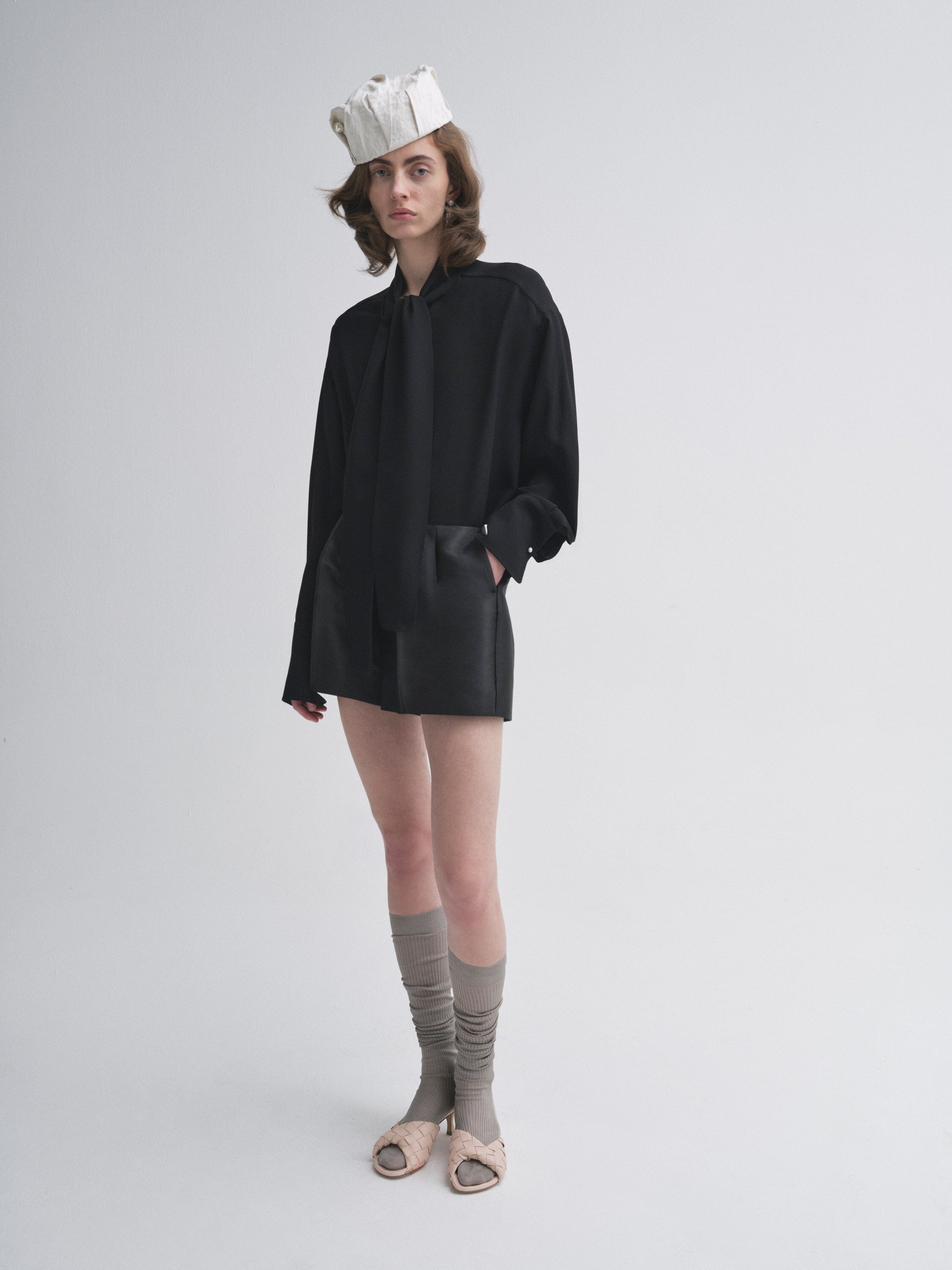 Tennis style structured shorts with pockets. 51% Polyester 43% Cotton 6% Silk